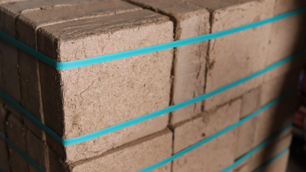 5. Con estas cuerdas gruesas se tejen manualmente las esteras. Las esteras terminadas se desinfectan con llama de gas LP a 800–1000 °C.